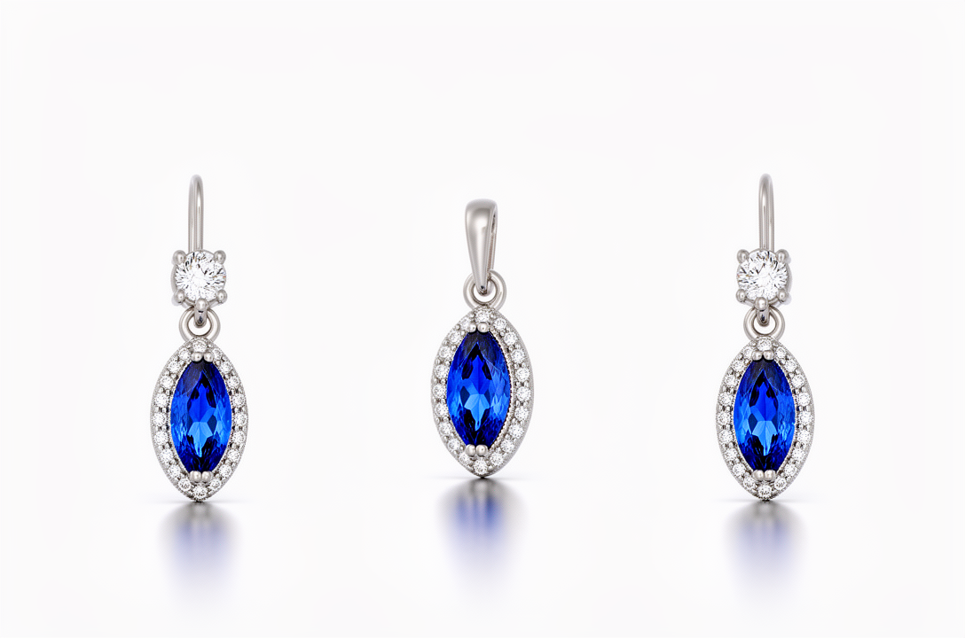 Komplet srebrnej biżuterii  przedstawiony w naszej ofercie  został wykonany z wysokiej jakości srebra próby 925. Biżuteria została stworzona z pasją i wielką precyzją, aby zapewnić komfort jej użytkowania. Dzięki doskonałemu połączeniu piękna i precyzji powstał zestaw biżuterii, który zaspokoi najbardziej wyszukane gusta. Komplet biżuterii srebrnej przeznaczony jest dla wyjątkowej osoby, w subtelny sposób podkreślający jej piękno.  W ofercie posiadamy komplety biżuterii srebrnej rodowane i nierodowane.