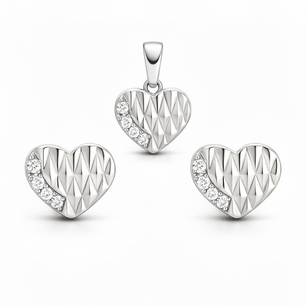 Komplet srebrnej biżuterii przedstawiony w naszej ofercie został wykonany z wysokiej jakości srebra próby 925. Biżuteria została stworzona z pasją i wielką precyzją, aby zapewnić komfort jej użytkowania. Dzięki doskonałemu połączeniu piękna i precyzji powstał zestaw biżuterii, który zaspokoi najbardziej wyszukane gusta. Komplet biżuterii srebrnej przeznaczony jest dla wyjątkowej osoby, w subtelny sposób podkreślający jej piękno. W ofercie posiadamy komplety biżuterii srebrnej rodowane i nierodowane.