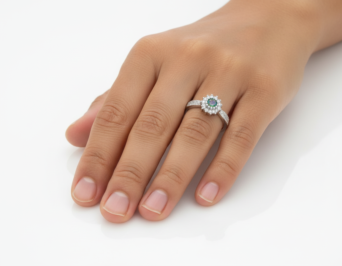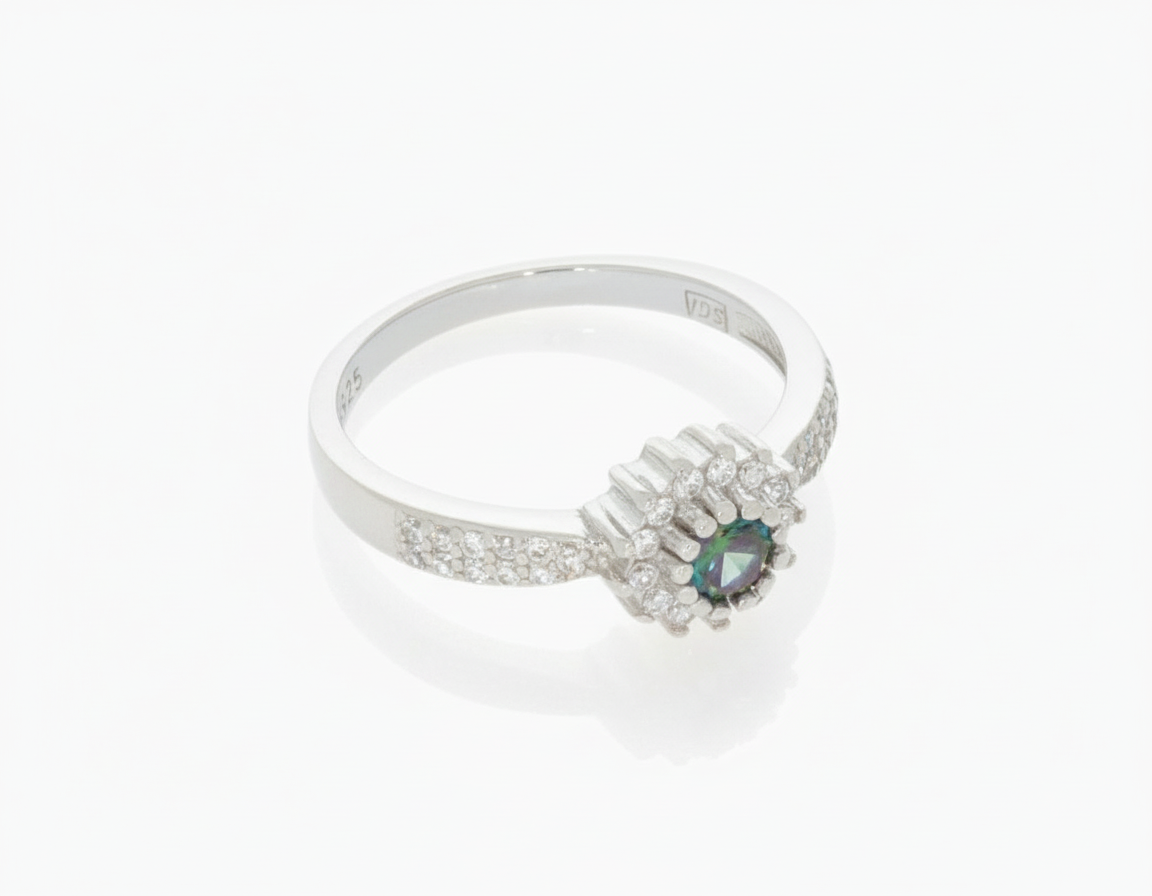 Srebrny pierścionek przedstawiony w naszej ofercie został wykonany z wysokiej jakości srebra próby 925