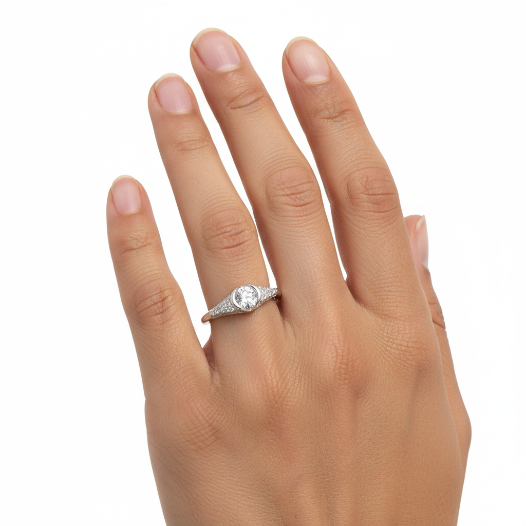 Srebrny pierścionek przeznaczony jest dla wyjątkowej kobiety, umiejącej docenić prawdziwe piękno i ponadczasowość produktu.
