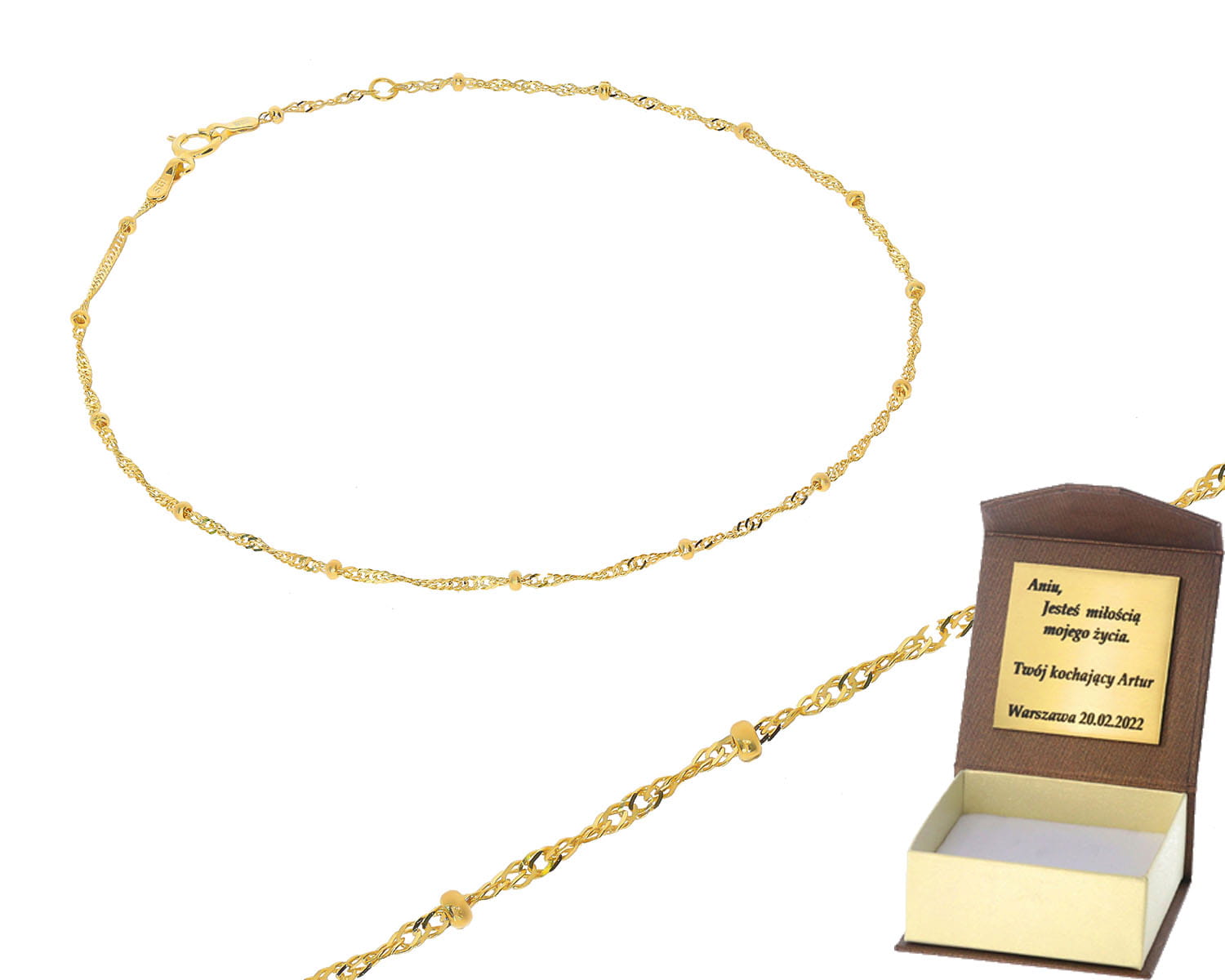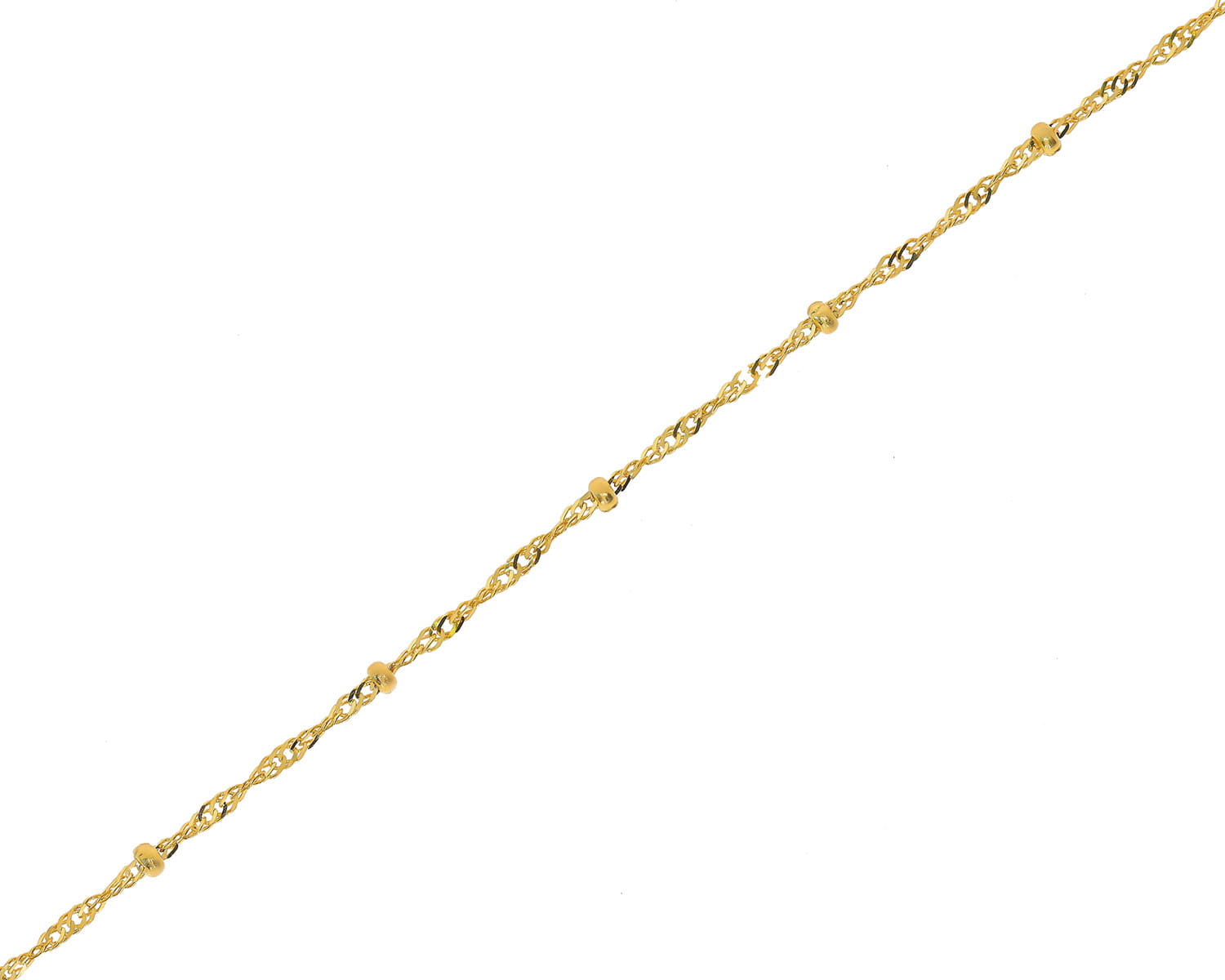 Złota bransoletka przedstawiona w naszej ofercie została wykonana z wysokiej jakości złota próby 585. Biżuteria została stworzona z pasją i wielką precyzją, aby zapewnić komfort jej użytkowania.