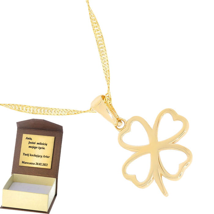 Dzięki jego trwałości będzie służył przez wiele lat i nawet po dłuższym czasie nadal będzie wartościowy. Do złotego wisiorka w naszej ofercie proponujemy dużą ilość modeli łańcuszków doskonale pasujących jako komplet. Zależnie od Twoich potrzeb możesz zakupić jedynie wisiorek lub dobrać łańcuszek według własnego gustu. W przypadku wątpliwości służymy fachowym doradztwem.