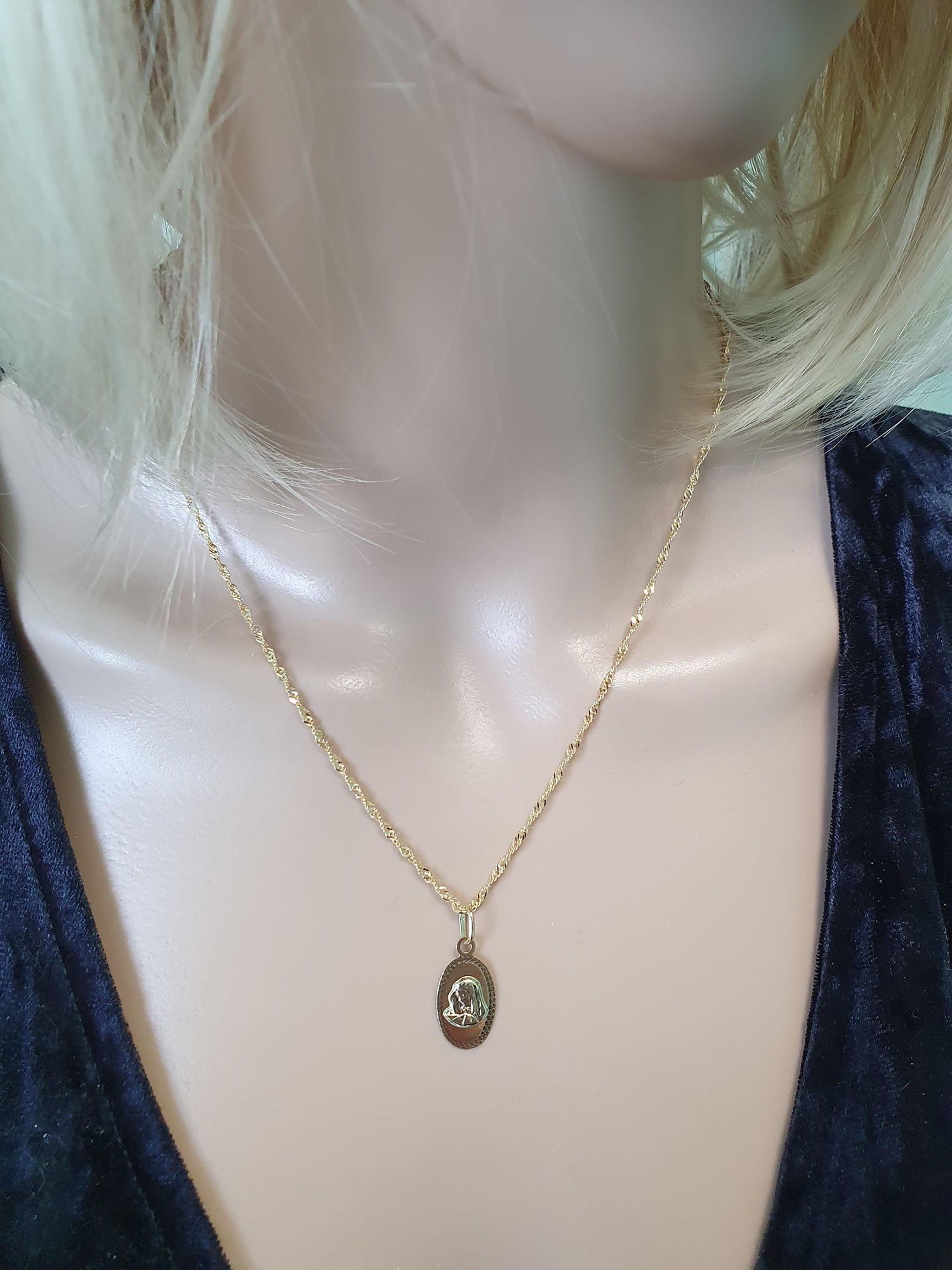 Złoty medalik przedstawiony w naszej ofercie został wykonany z wysokiej jakości złota próby 585.