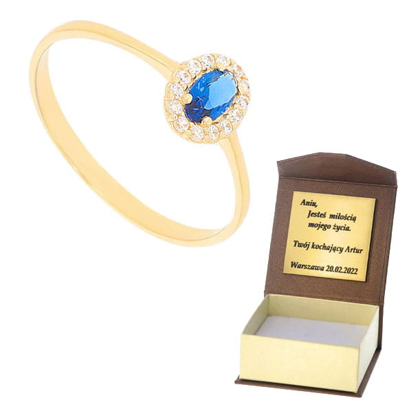 Złoty pierścionek przedstawiony w naszej ofercie został wykonany z wysokiej jakości złota próby 585.