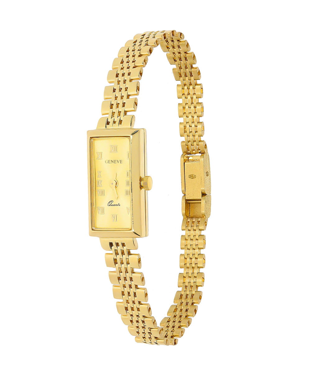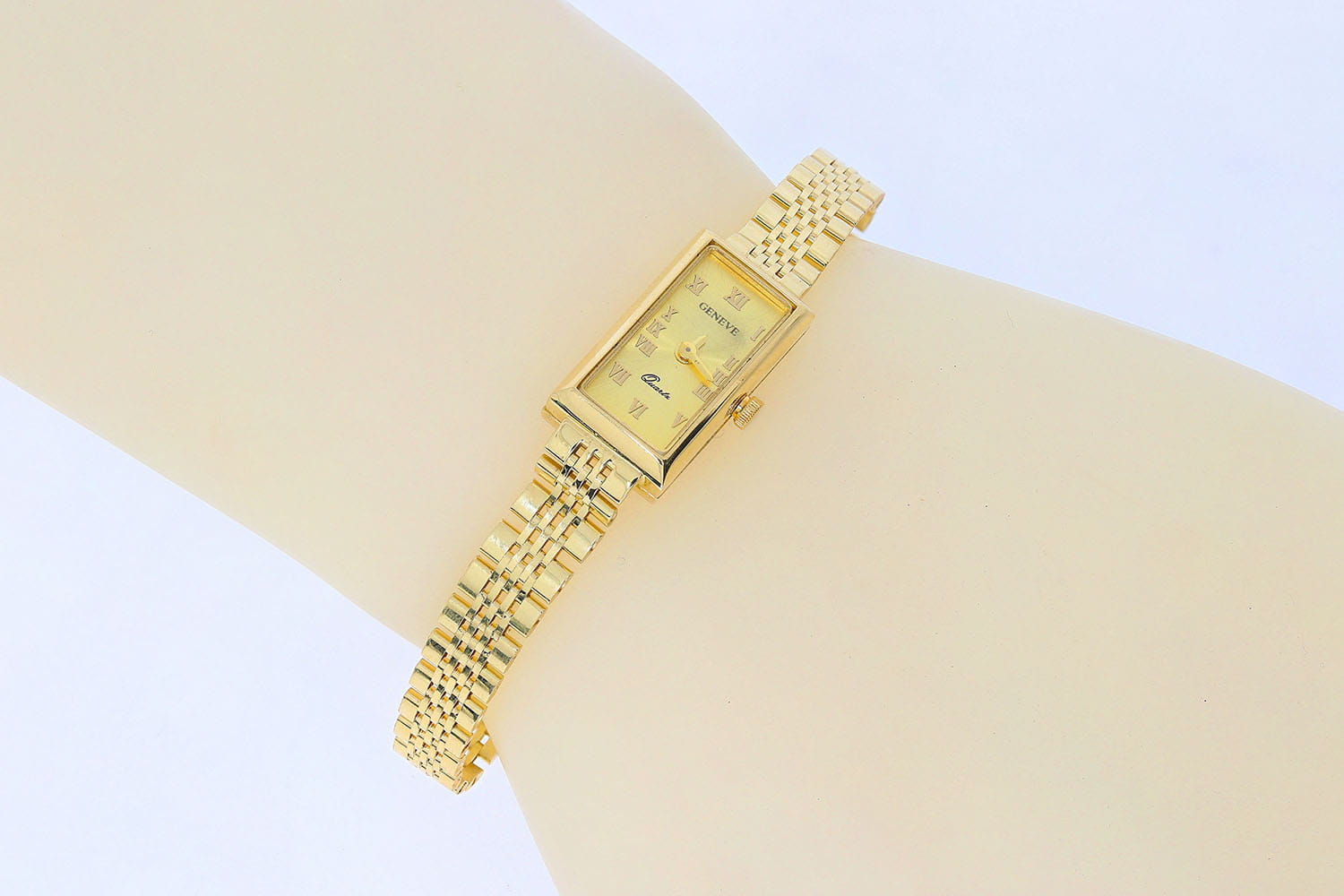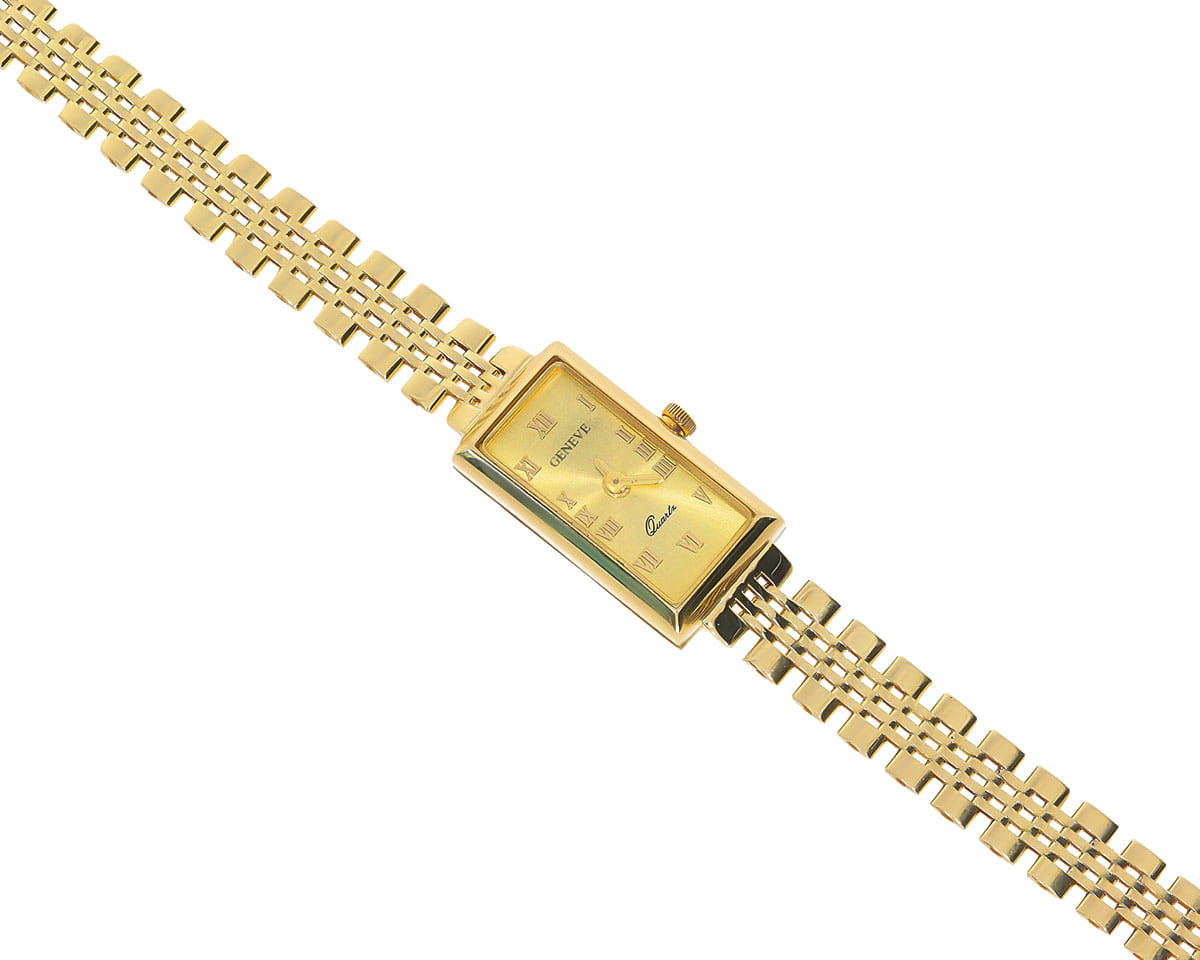 Złoty zegarek Geneve przedstawiony w naszej ofercie został wykonany z wysokiej jakości złota próby 585. Biżuteria została stworzona z pasją i wielką precyzją, aby zapewnić komfort jej użytkowania.