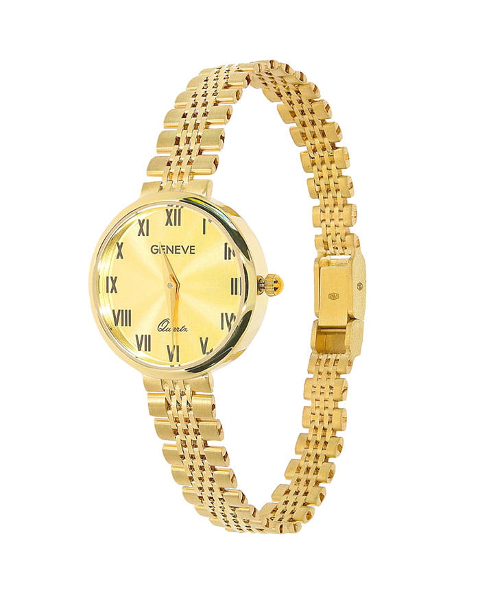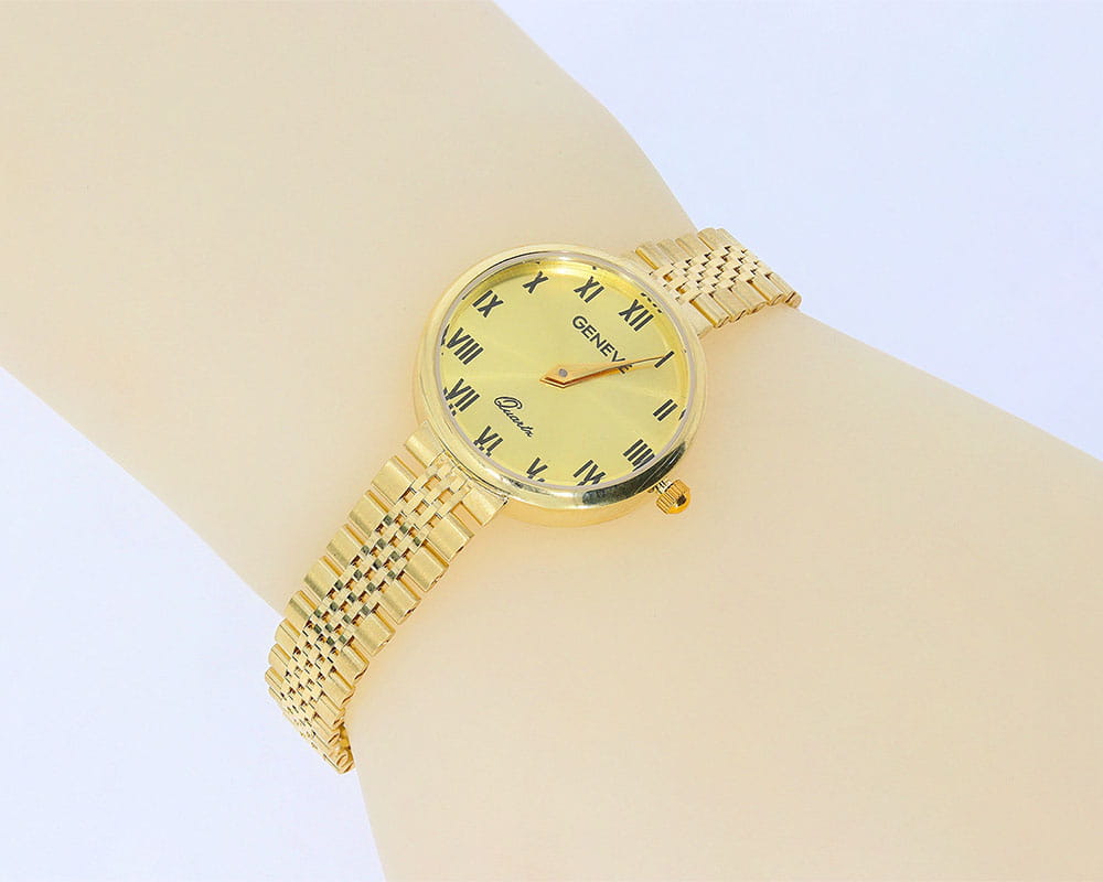 Złoty zegarek Geneve przedstawiony w naszej ofercie został wykonany z wysokiej jakości złota próby 585. Biżuteria została stworzona z pasją i wielką precyzją, aby zapewnić komfort jej użytkowania.