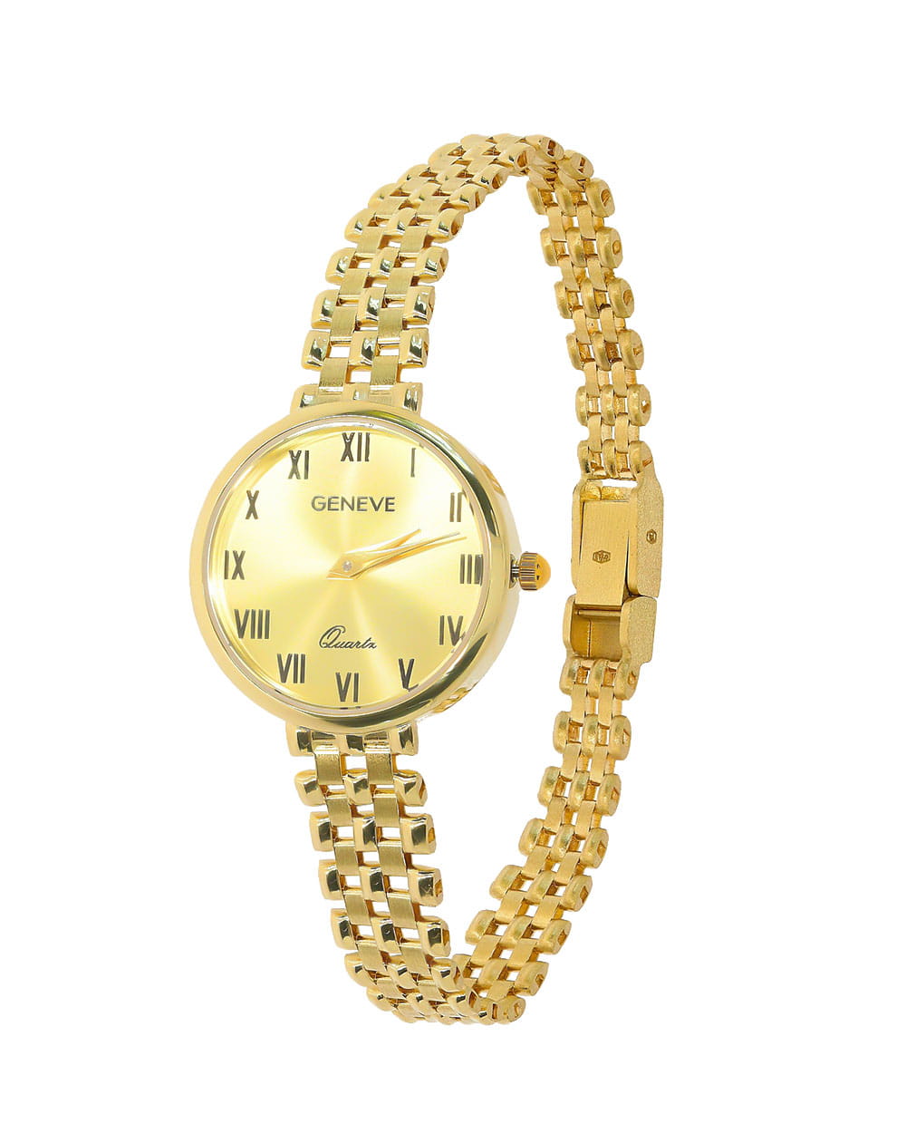 Złoty zegarek Geneve przedstawiony w naszej ofercie został wykonany z wysokiej jakości złota próby 585. Biżuteria została stworzona z pasją i wielką precyzją, aby zapewnić komfort jej użytkowania.