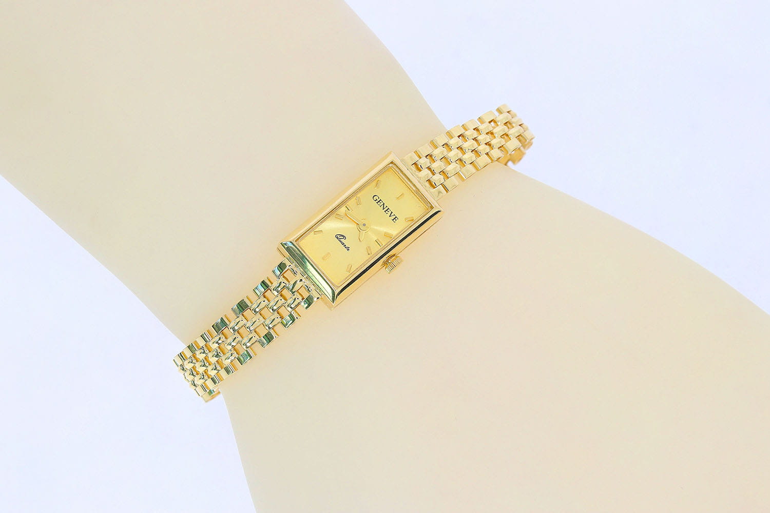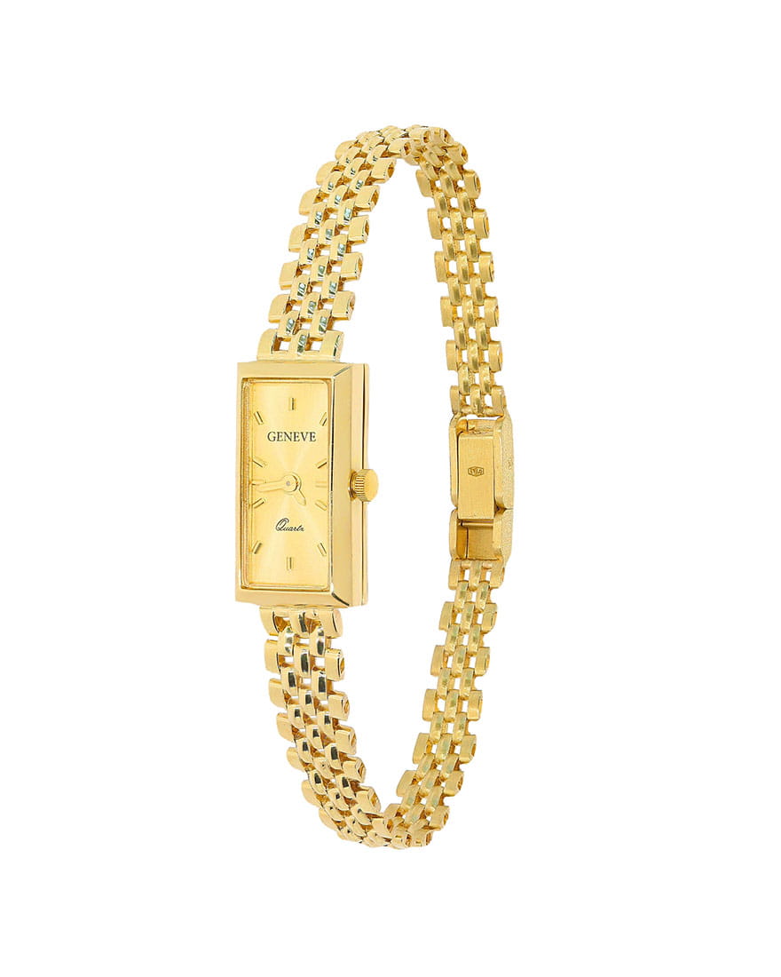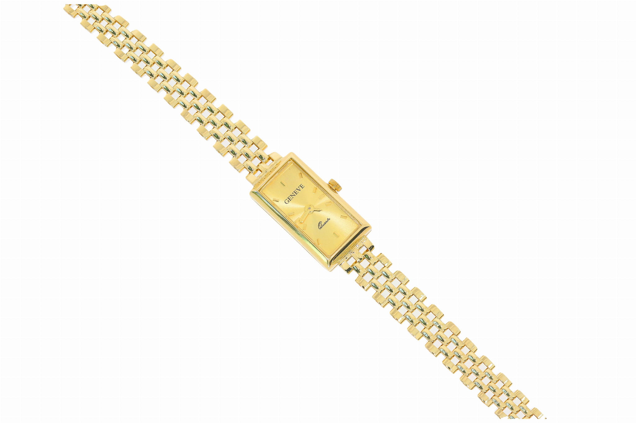 Złoty zegarek Geneve przedstawiony w naszej ofercie został wykonany z wysokiej jakości złota próby 585. Biżuteria została stworzona z pasją i wielką precyzją, aby zapewnić komfort jej użytkowania.
