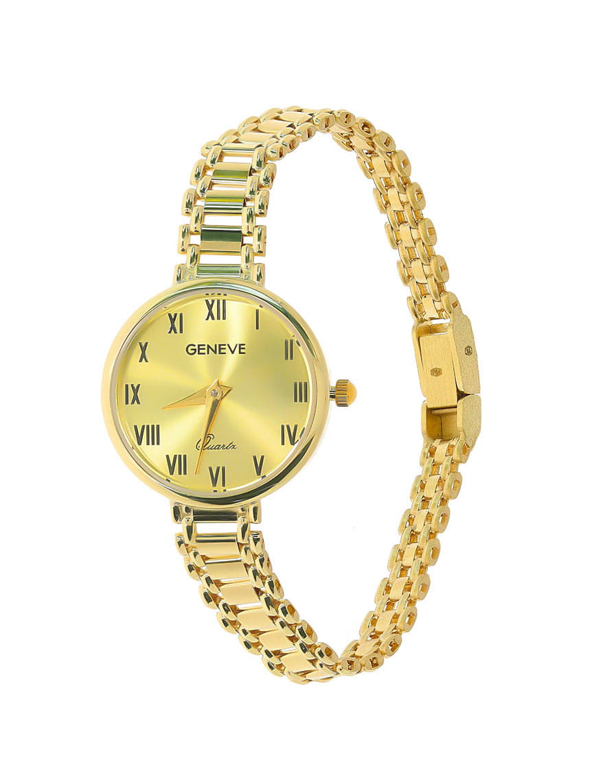 Złoty zegarek Geneve przedstawiony w naszej ofercie został wykonany z wysokiej jakości złota próby 585. Biżuteria została stworzona z pasją i wielką precyzją, aby zapewnić komfort jej użytkowania.