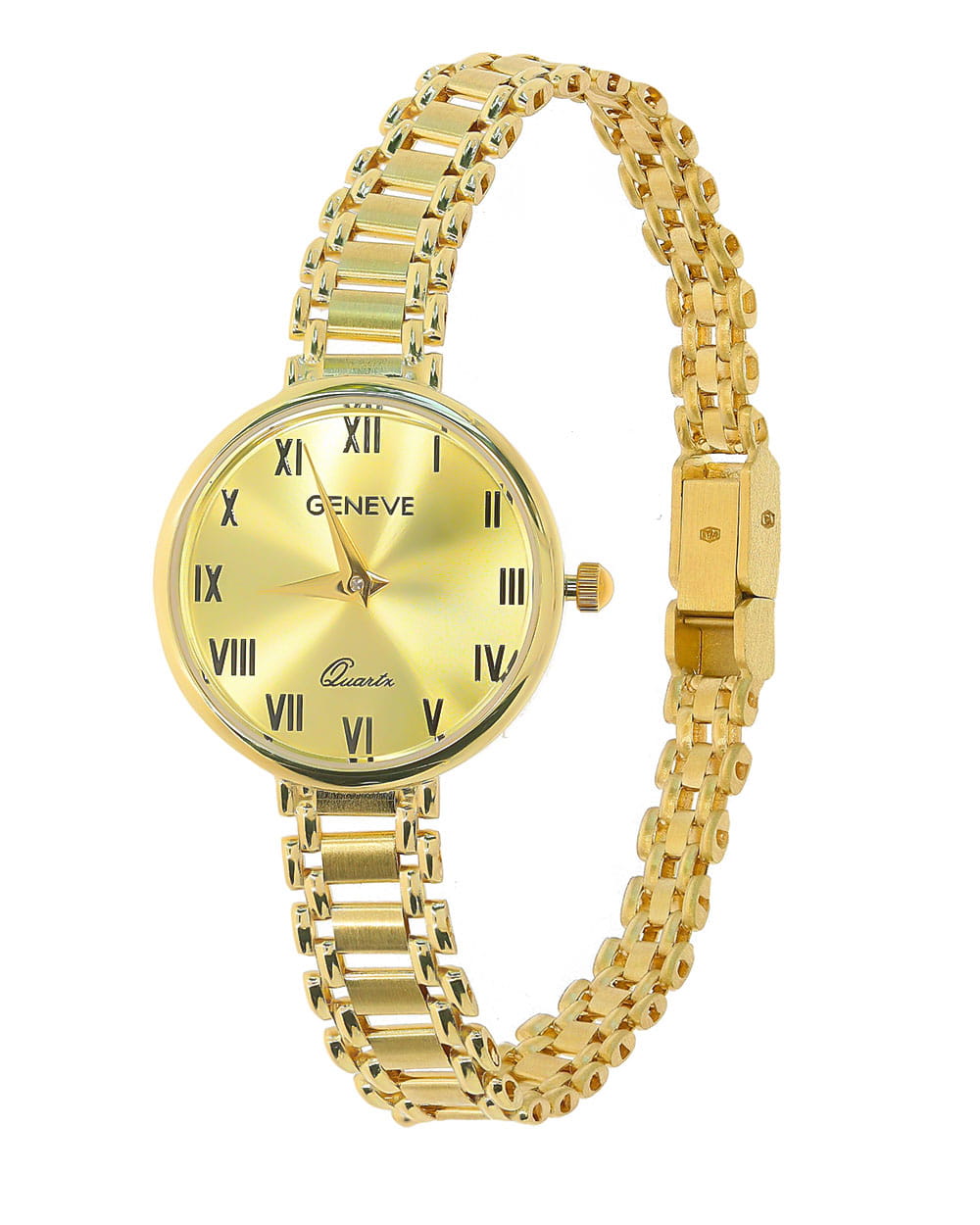 Złoty zegarek Geneve  przedstawiony w naszej ofercie  został wykonany z wysokiej jakości złota próby 585. Biżuteria została stworzona z pasją i wielką precyzją, aby zapewnić komfort jej użytkowania.