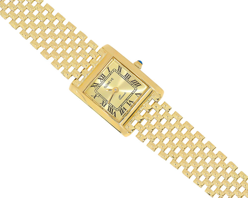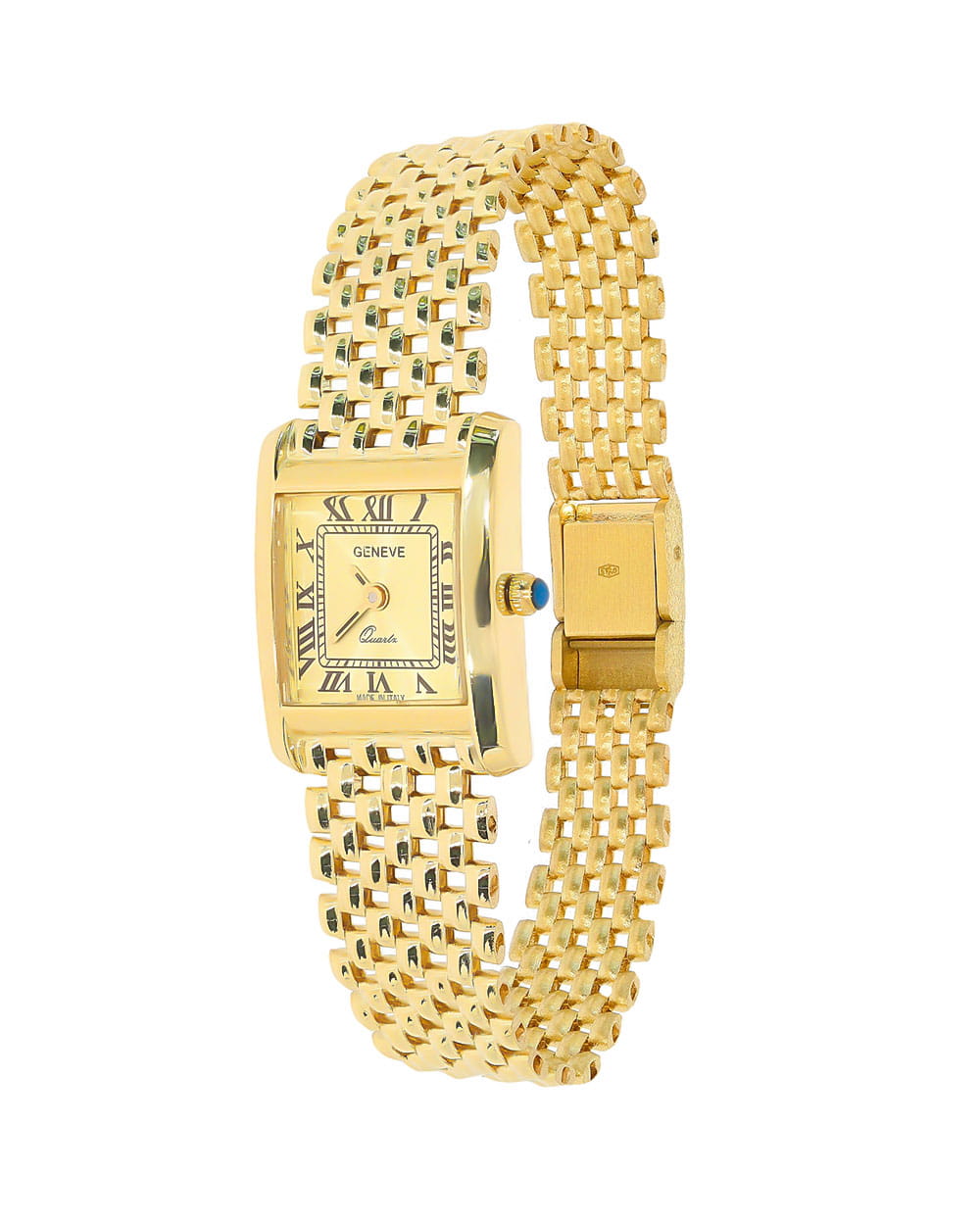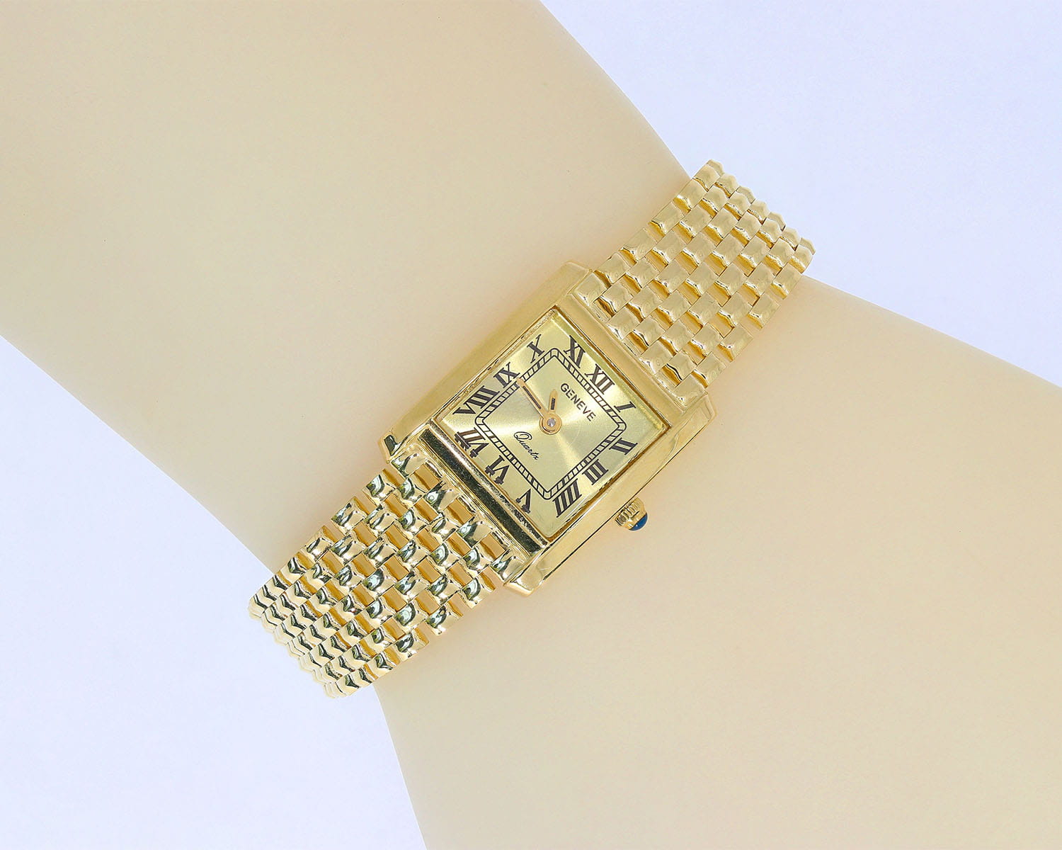 Złoty zegarek Geneve przedstawiony w naszej ofercie został wykonany z wysokiej jakości złota próby 585. Biżuteria została stworzona z pasją i wielką precyzją, aby zapewnić komfort jej użytkowania.