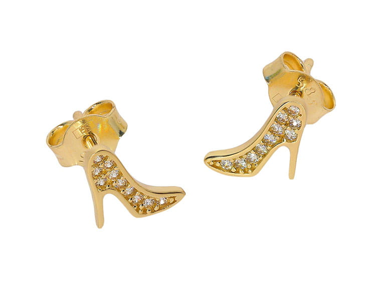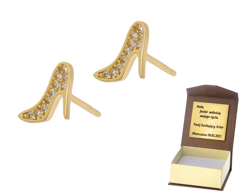 Złote kolczyki buty na obcasie próby 585