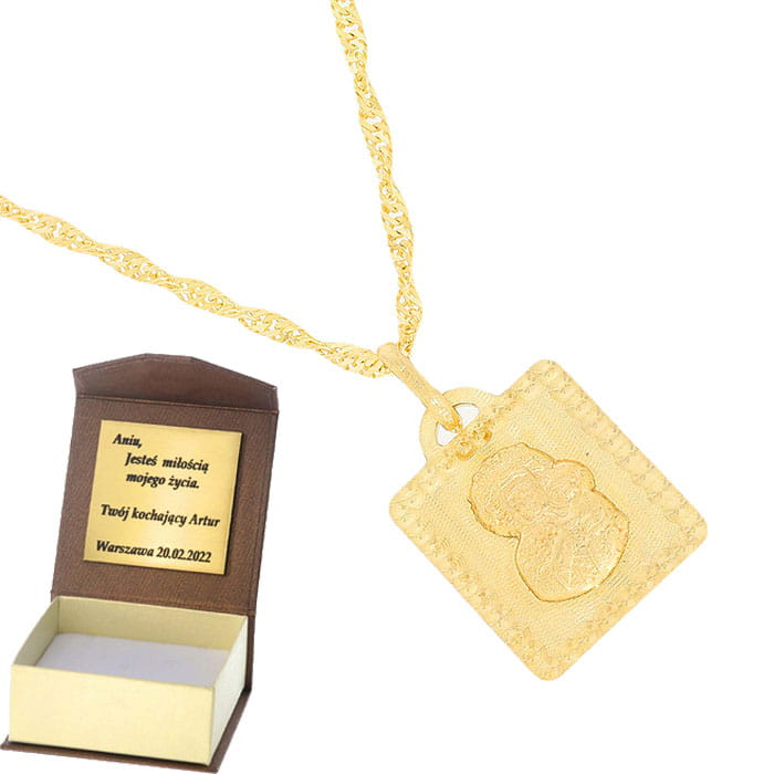 Złoty medalik próby 585 doskonale nadaje się jako prezent na tak ważne uroczystości jak Chrzest Święty czy Pierwsza Komunia Święta. Jest to podarunek o głębokim znaczeniu, który może stać się pamiątką na całe życie, przypominającą o ważnych chwilach i wartościach. Jego klasyczny, elegancki charakter sprawia, że medalik nigdy nie wychodzi z mody i z powodzeniem towarzyszy obdarowanej osobie przez kolejne lata.