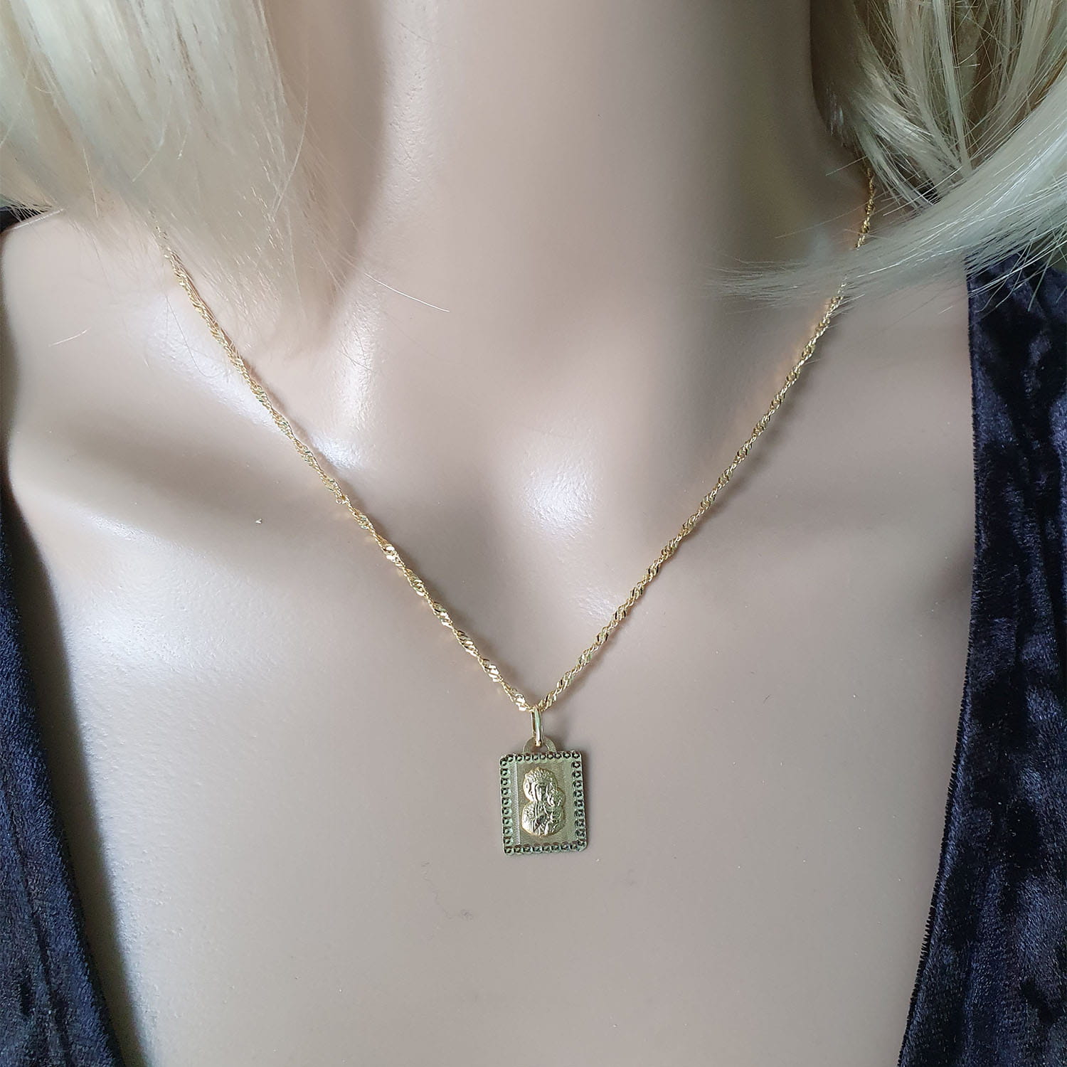 Do prezentowanego złotego medalika oferujemy bardzo szeroki wybór łańcuszków, które idealnie pasują jako komplet. Różnorodność splotów, długości i grubości pozwala dopasować zestaw do własnych preferencji oraz okazji. Zależnie od potrzeb możesz zdecydować się na zakup samego medalika lub dobrać łańcuszek według własnego gustu, tworząc niepowtarzalną i osobistą biżuterię.